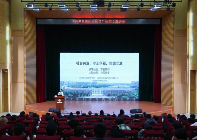 11月25日,在第38个“世界艾滋病日”来临之际,以“社会共治、守正创新、终结艾滋”为主题的2025年世界艾滋病日宣传教育活动在我校隆重举行。本次活动由我校与河源市疾控中心共同主办,旨在进一步推动艾滋病防治工作,普及防治知识,增强师生及社会公众的自我防护意识和能力,营造全社会参与艾滋病防治工作的良好氛围。