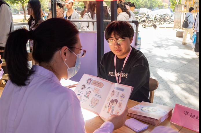 专题讲座的同时,我校联合河源市疾控中心、河源市妇幼保健院、河源市慢性病防治院、河源市健康教育所、河源市计划生育药具管理站、江东新区社会事务局、大学城社区卫生服务中心、河源市逸家公益服务中心等八家单位在校园内设置了集中的宣传咨询点。学校组织由励志团体、青春同伴社、爱心协会、养生保健协会等学生社团组成的共计200余名志愿者参加现场宣传。各单位通过悬挂横幅、摆放展板、发放宣传折页、义诊、提供现场咨询、开展有奖问答等多种形式,向广大师生广泛宣传艾滋病防治知识和国家相关政策。现场气氛活跃,师生们纷纷驻足观看、咨询,积极参与互动,有效提升了对于艾滋病防控知识的知晓率和自我防护意识。