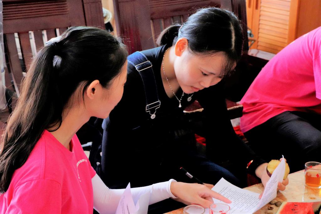 在下石,形式也与新村的形式基本一致,但团队在下石村委的支持下,在当地小学开班授课,通过集体授课的形式,以更易接受新兴事物的年轻群体作为突破对象,更好地使宣传推广达到预期效果。作为带队前往该服务点的队长,来自工商管理学院18物业管理2班的黄艳芬表示,刚开始在走访经济困难家庭因为语言沟通上会存在一定的困难,而且相当一部分人不了解资助政策也不愿意填写调查问卷,考虑到各种因素,团队转变沟通技巧,用更通俗易懂的语言告诉村民们有关国家奖助贷政策的益处,才逐渐使村民慢慢地去接受。