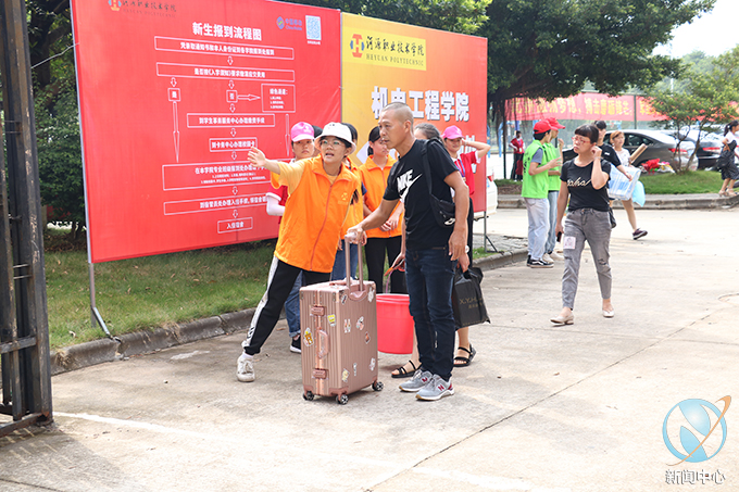 为了让新生可以更加方便、快捷地完成注册入学,我校在校外的河源市火车站、新城客运站等迎新报到点设立了接站志愿者队伍并且安排车辆接送新生到校,在校园内设立了新生引导志愿者队伍,热情积极的帮助到校新生提行李、带路、引导新生完成报到工作及入学事务;还设立了校内咨询服务站给新生提供咨询服务,为新生和家长担当校园导游,耐心地为新生以及家长答疑解惑,为新生介绍学校的环境及相关情况,帮助新生尽快了解和适应学校环境;在学校道路设立了校外车辆引导志愿者队伍协助保卫人员指挥交通,引导家长的车辆出入停放。此外学校还设立了多个学生家长休息区以及行李寄放区,为新生及家长提供休息等候的场所。各个岗位的志愿者身着鲜艳的红色短袖,不辞辛苦,认真工作,志愿者们以饱满的精神状态投入到迎新工作之中。