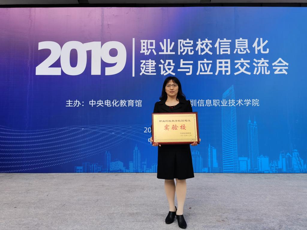 近日,中央电化教育馆组织对第三批职业院校数字校园建设实验校提交的中期建设报告进行了审核,我校顺利通过专家评审。12月20日,由中央电化教育馆主办的2019职业院校信息化建设与应用交流会在深圳信息职业技术学院召开,我校代表参加会议并接受“职业院校数字校园建设实验校”授牌。