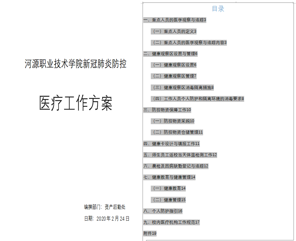 防控工作启动以来,转发、落实各类工作指引不少于26项,涉及校园卫生、消毒、通风、电梯、卫生间、个人、居家、工地、物业、食堂、办公室、图书馆等各个方面的防控指引。