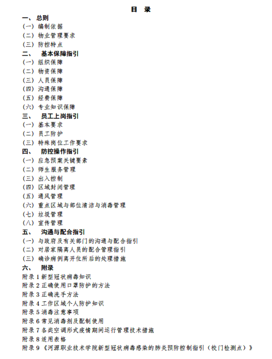 河职院新型冠状病毒肺炎疫情防控物业工作专项方案目录