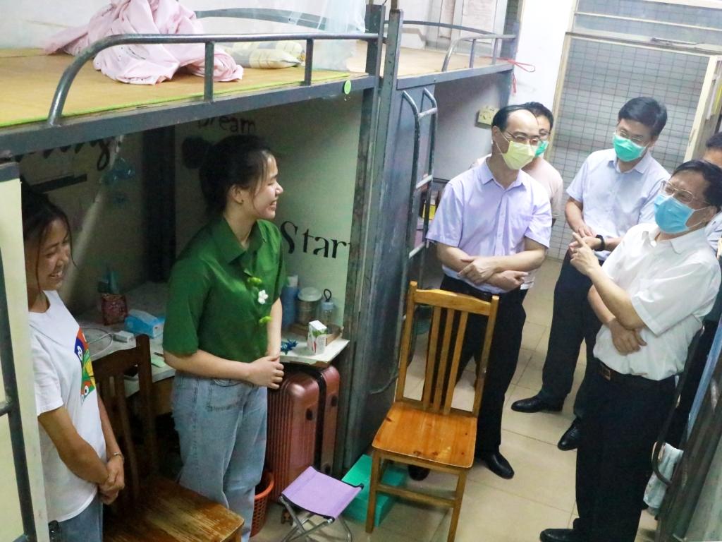 为帮助疫情防控期间返校的毕业班学生尽快适应学校防疫措施流程,了解帮助解决毕业生毕业、就业相关问题或困难,5月19日晚上,学校党委书记韦荣,党委副书记、纪委书记叶国英,副校长赖小景、王小宁和张国勇等分别带队走访了2017级返校的毕业生,了解他们的思想动态、毕业手续办理及就业等情况,为毕业生送来最诚挚的祝福。