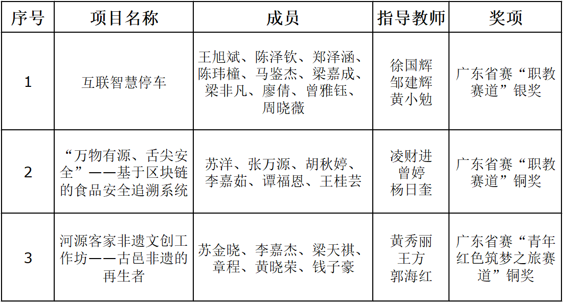 表1 第六届中国国际“互联网+”大学生创新创业大赛广东分赛获奖名单