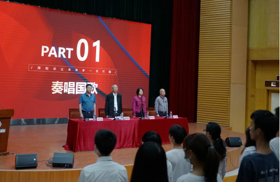 开学典礼随着雄壮的国歌声拉开了序幕。