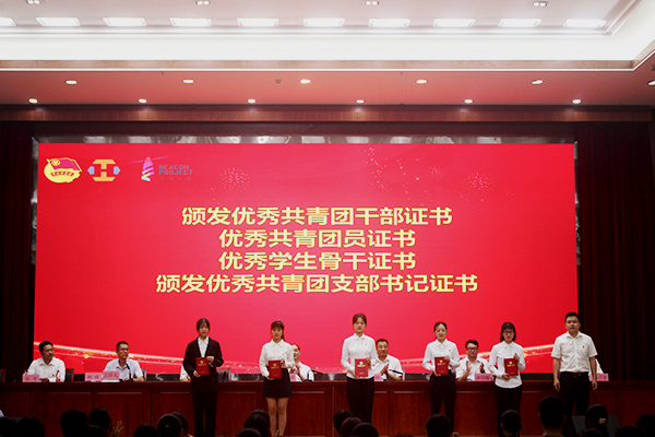 会议在庄严肃穆的国歌中拉开序幕。赖小景副校长分别为广东省优秀共青团员黄冬婷、省优秀学生会工商管理学院、河源市优秀团干部杨日奎书记、优秀共青团员陈慧婷颁发荣誉证书。会上,宣读了《乐动在线登录_乐动(中国)2021年五四表彰决定》,并为受表彰的先进集体和先进个人颁奖。