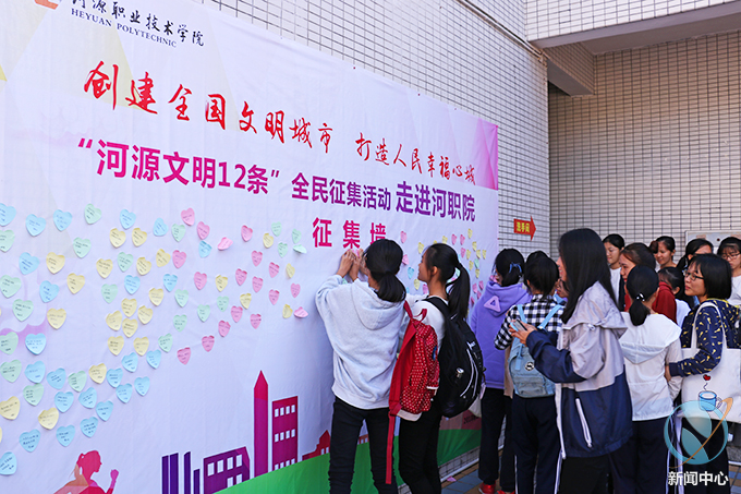我校党委韦荣书记表示,我校作为“河源文明12条”全民征集活动中线下征集的首选站,离不开市宣传部和市文明办对我校的大力支持。今天的活动只是我校在创文路上的一个小环节,我校在今后创文工作中要全力以赴,全面推进创文迎检攻坚工作,发挥好高校的示范带头作用,加大对创文工作活动的宣传力度,带动更多师生积极主动参与到创文工作中来,为我市创文工作作出应有的贡献。