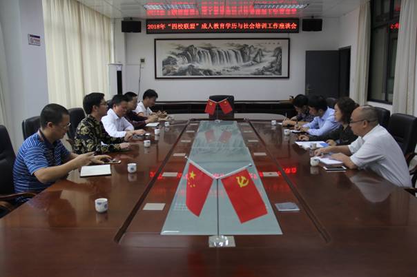 会上,四校代表还就开展成人学历教育与社会培训工作中遇到的场地资源、设施设备、师资、管理服务、费用开支、教材、业务开发等问题交换了意见。
